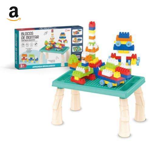 Mesa Infantil Educativa com Blocos de Montar Azul
