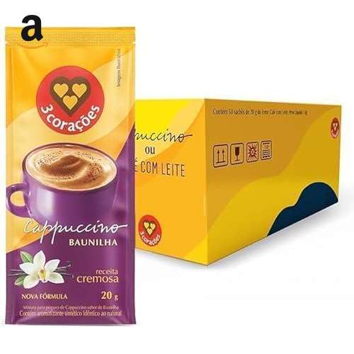 Cappuccino Sabor Baunilha 3 Corações 20g – 50 Unidades