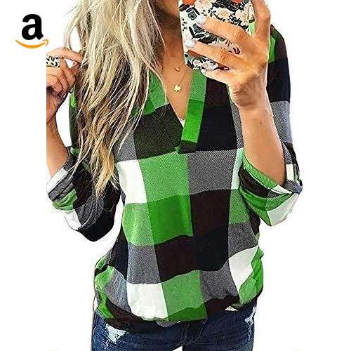 Blusa feminina xadrez gola V verde