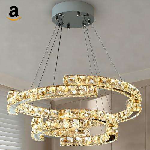 Lustre Pendente LED Dourado 2 Anéis Ajustáveis
